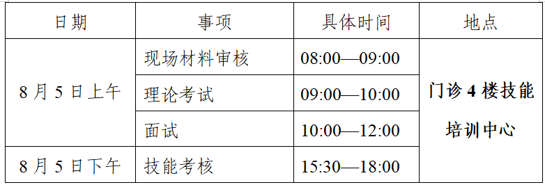 2.基地现场审核、面试补录:8月20日上午10:00-12:00;面试考录时间:14:30-17:00。