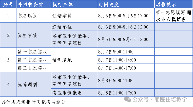 2025年浙江省住培补招收时间安排一览表