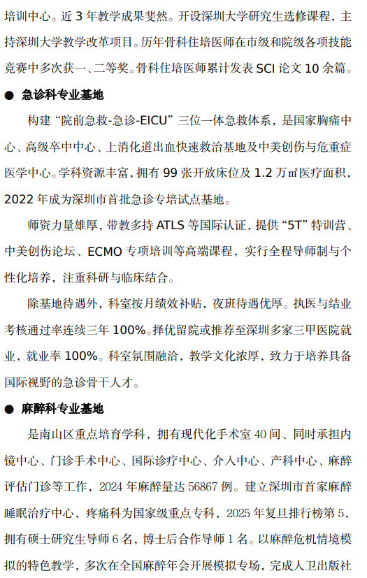 华中科技大学协和深圳医院(南山医院)规培信息汇总