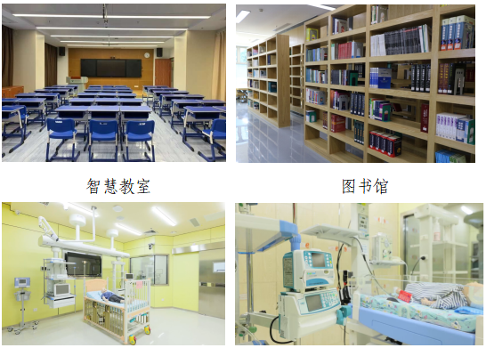 医院教学设施齐全,教学场地面积近4500㎡,有图书馆、学术报告厅、多媒体智慧教室等,具备远程教学直播平台。图书馆纸质和电子图书近802万册,能很好地满足临床教学的需要。技能培训部场地面积约2000㎡,配备多功能模拟人、生理驱动高端模拟人等教学模型,有内、外科基础技能室、模拟手术室、虚拟仿真高级技能训练室及12站标准化OSCE考站,是深圳市卫生健康委主导建设的医学模拟教育体系的重要组成部分。