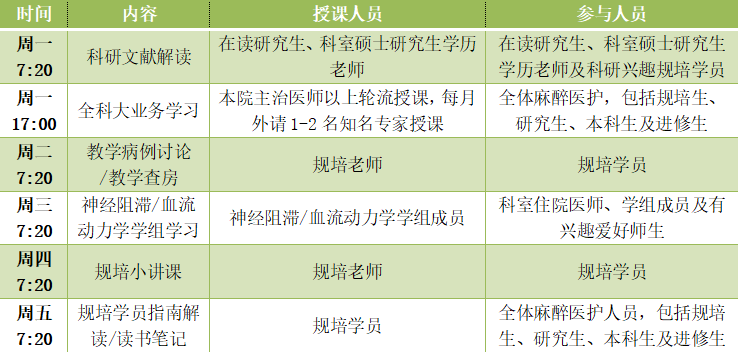 医院临床技能培训中心可提供全面的住院医师专科技能培训,定期进行高级气道管理、心肺复苏、神经阻滞、椎管内麻醉等相关技能的模拟培训,全面提升规培学员的临床专业技能。科室手术量大、种类齐全,涵盖麻醉专业住院医师规范化培训要求轮转的所有亚专科;采用电子轮转管理系统,保证各个专科麻醉的临床实践和锻炼;为每一位规培医生配备全程导师,全方位指导学员成长。基地至今共培养规培医生49人,15人已顺利结业。