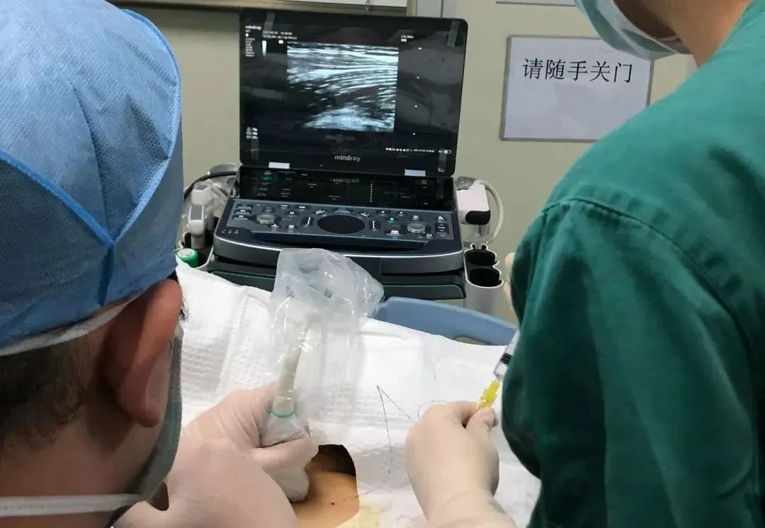 科室为索诺声超声培训基地及迈瑞可视化培训基地,广泛开展各种超声引导下神经阻滞技术,包括腹横肌阻滞、腰方肌阻滞、竖脊肌阻滞、股神经、坐骨神经、髂筋膜和臂丛等各种躯干和四肢神经阻滞。连续神经阻滞术后镇痛为科室技术特色,可为围术期患者提供更好的镇痛效果,加速术后康复,获得相关科室及病人的高度认可。2021年开展1000余例,包括髂筋膜、收肌管、坐骨神经、肋锁间隙等连续神经阻滞,数量位居全省前列。
