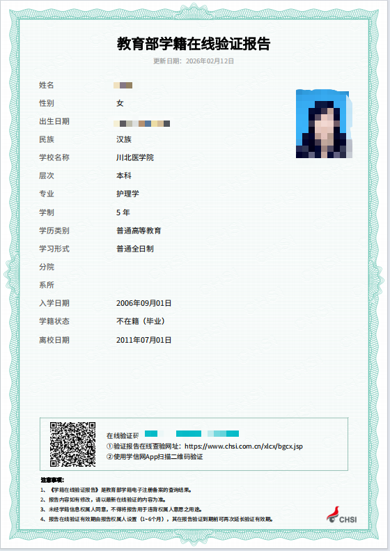 (4)2026年拟获的最高学历的教育部学籍在线验证报告(如下图)。
