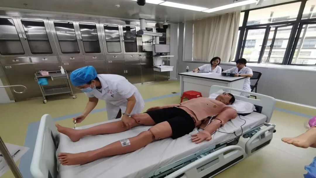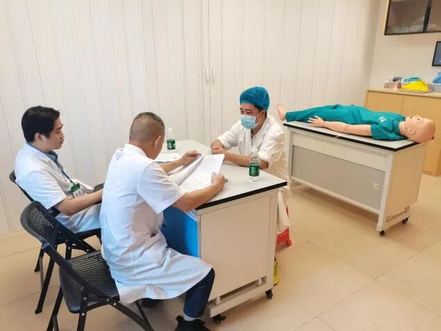 临床技能中心设置包括基础培训室5间、模拟产妇及模拟ICU、模拟手术室、腔镜培训中心等情景模拟培训室,多媒体教室、讨论室等功能室。现有内、外、妇、儿、护理等各种基础训练模型60种,急救技能训练模型11种,高级综合训练模型3种,腹腔镜训练箱9台,带评估功能腔镜训练器2台,腹腔镜手术模拟器1台以及全科临床思维训练系统,能满足日常培训需求。目前有住院医师规范化培训管理系统对住培学员进行管理、培训及考核,新增设技能中心综合管理平台,设置了OSCE考站(6个考站),能满足学员日常考核及年度考核需求。
