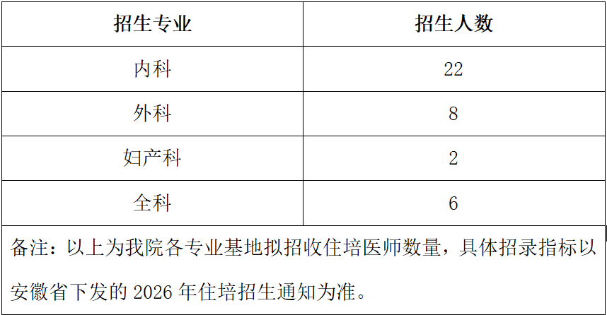 4.2026年住院医师规范化培训招生工作由安徽省统一部署,具体招生情况以安徽省正式招生文件为准,有意向报名者可登录安徽省住院医师培训信息化管理系统平台(http://39.145.8.9:9889/)关注住院医师规范化培训工作动态。