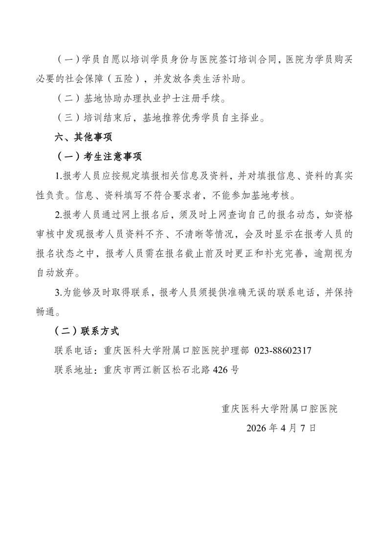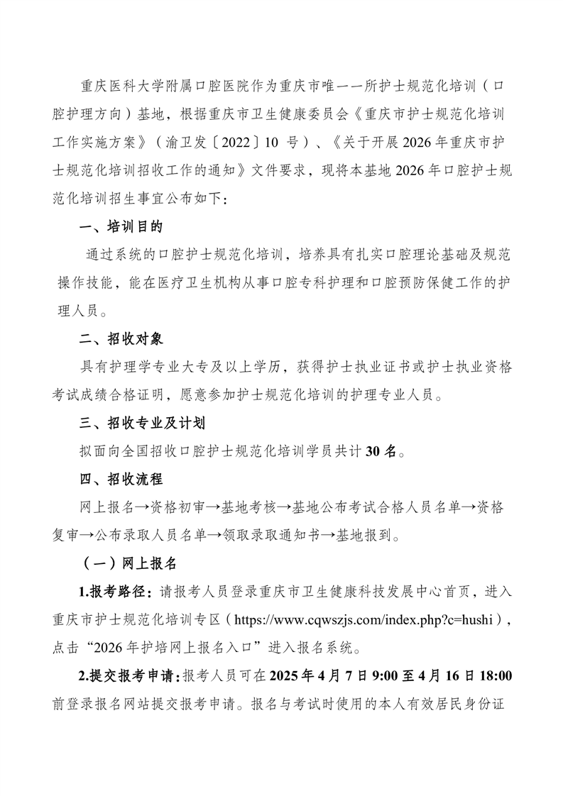 重庆 | 重庆医科大学附属口腔医院2026年重庆市护士规范化培训(口腔护理方向)招生简章