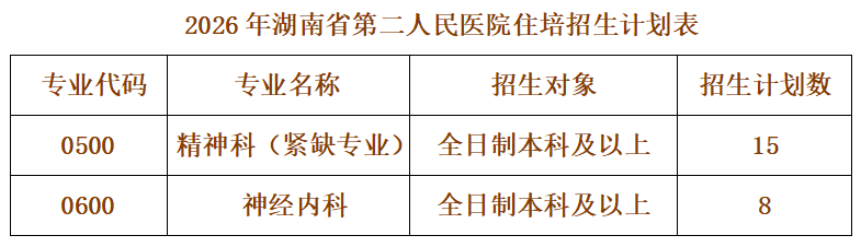 按照国家卫生健康委统一部署和湖南省卫生健康委相关文件精神,我院2026年住院医师规范化培训现面向全国公开招录住院医师,招录计划如下: