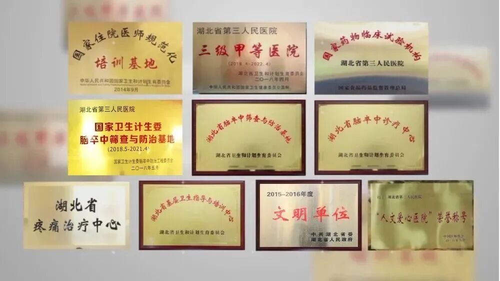 医院不仅是国家卫生健康委指定的省级脑血管病防治技术牵头单位,也是国家卫生健康委脑卒中筛查与防治基地、国家高级卒中示范中心、湖北省脑卒中诊疗中心,湖北省“323”攻坚行动脑卒中防治中心挂靠单位,湖北省脑卒中防治中心办公室,还是国家难治性疼痛规范化诊疗示范基地、全国肝胆病防治技术示范基地,湖北省疼痛治疗中心等国家级及省级中心。