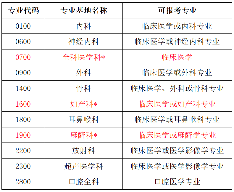 2.本科专业已限定专业方向的本科毕业生(如麻醉学、放射、超声医学等),申报专业限定为原本科专业或全科医学科。