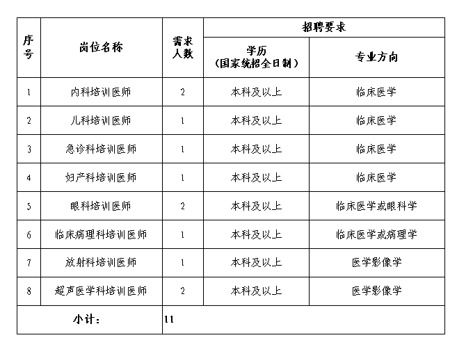 梅州市人民医院现面向社会招收2022年第2批住院医师规范化培训学员11名,具体招生计划如下: