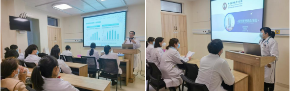内科专业基地把教学研究和教学改革作为提高住培医师规范化培训质量的源动力,定期开展教学查房、小讲课、病例讨论等教学活动,基地所属各亚专科均配备专用示教室,配备多媒体等教学设备,可满足住培需求。专业基地建立完整的考核制度,设置考核小组,组长由教学主任兼任、小组成员为教学小组成员,严格按照考核方案执行各类考核,针对执业医师资格考试、住培结业考核提供理论与技能专项培训,为学员通过“两考”保驾护航。