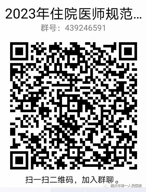 1、可扫码入“2023韶关市第一人民医院住培招收”QQ群咨询;