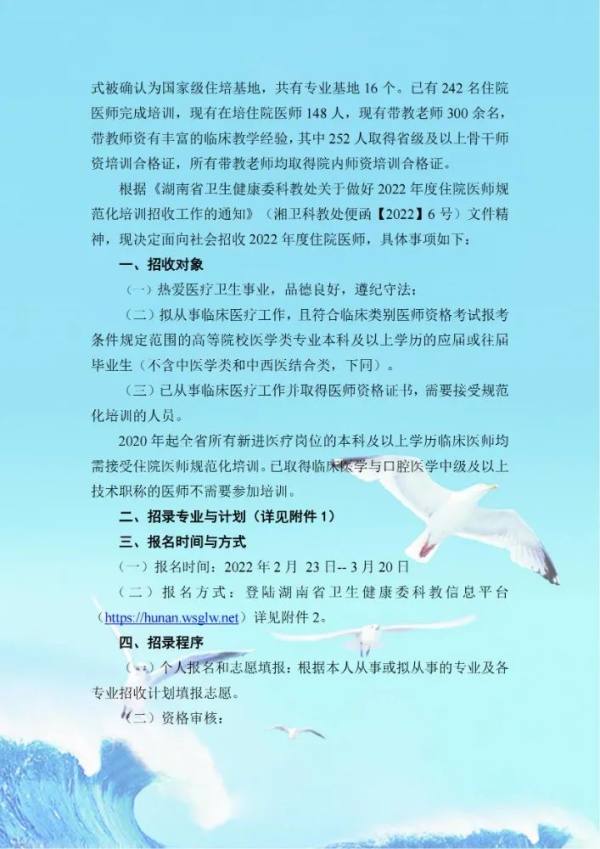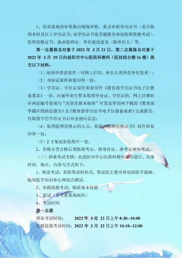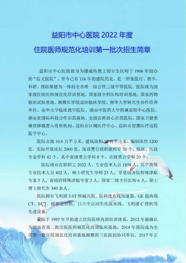 益阳市中心医院2022年住院医师规范化培训招生简章
