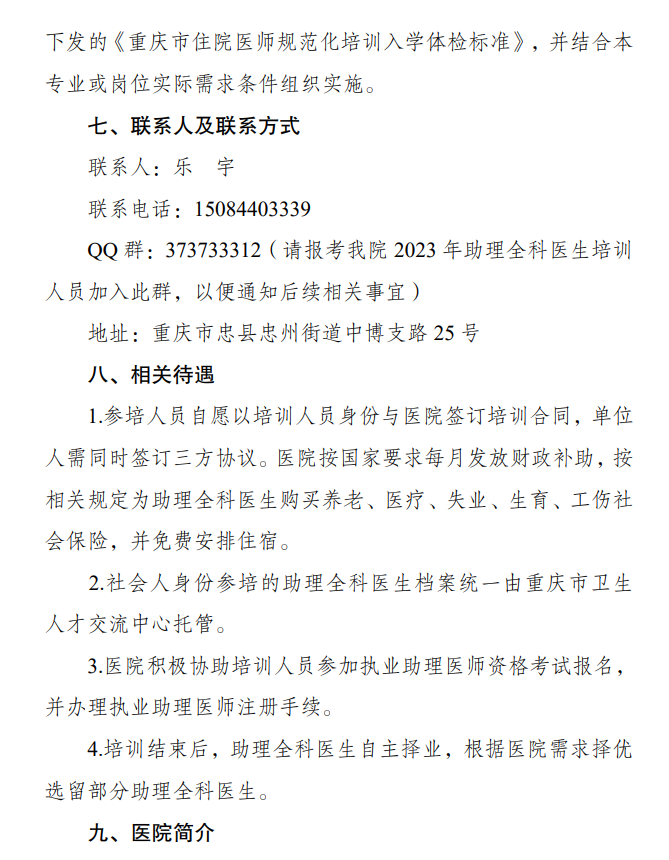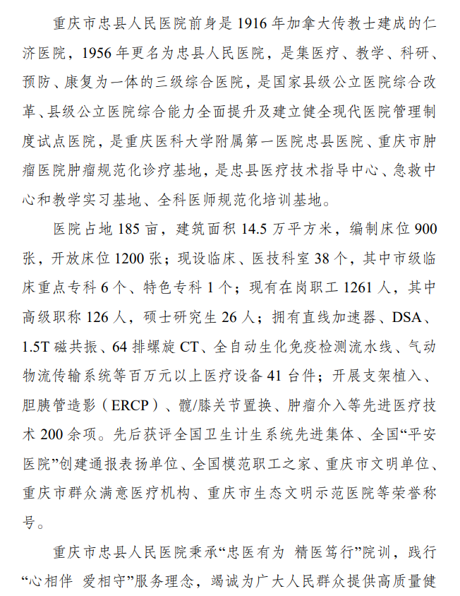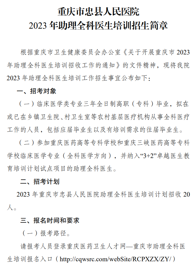 重庆市忠县人民医院2023年住院医师规范化培训招生简章