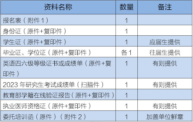 注:单位人须提供单位出具的委托培训函;应届毕业生需在报到前取得毕业证和学位证。资格和材料审查合格的考生方可参加我院统一组织的招收考试。