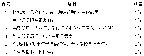 (2)网上报名:报名资料请按上面表格顺序要求整理为一个PDF文档发送到邮箱1016130447@qq.com,李老师。邮件主题请按“放射治疗技师+姓名”命名。