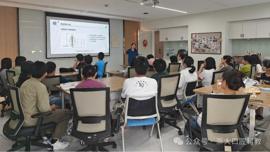 2.以岗位胜任力为导向的技能培训。学员入科前将进行岗前培训,确保掌握口腔修复的基础知识和操作技能,为接下来的临床实践奠定坚实基础。培训内容包括取模、口腔摄影、牙体预备以及可摘局部义齿设计等关键技能。学员通过互相取模练习,熟练掌握取模的技巧和要点;在口腔摄影培训中,学员将学习拍摄标准的口内照和面像照,以确保能够清晰记录口腔状况,辅助临床诊断和治疗规划;牙体预备培训则通过在头模上练习全冠、贴面和嵌体的预备,使学员掌握相关操作流程和技术要点;可摘局部义齿设计培训则旨在帮助学员掌握设计原理与技巧,确保能够根据患者的具体需求进行精准设计。通过这些多样化的技能培训,学员能够全面提升自己的临床能力和技术水平。