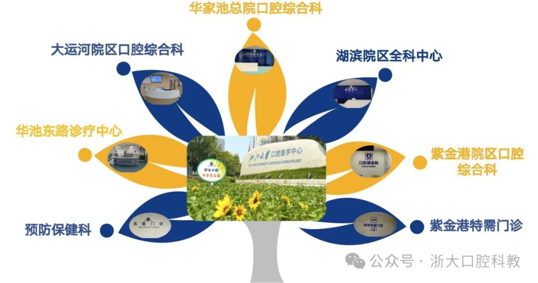 浙大口腔布局了“一体多翼”多院区战略发展新格局,华家池(口腔医学中心)总院位于华家池畔,湖滨(延安)院区毗邻美丽的西子湖,紫金港(城西)院区紧邻浙江大学紫金港校区,大运河(上塘)院区毗邻京杭古运河,多院区坚持同质管理、专家共享、学科统筹、科教协同、特色发展,携手无疆域互联网医疗,探索新时代全生命周期高质量口腔健康模式。
