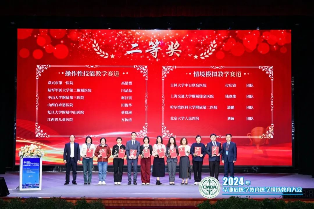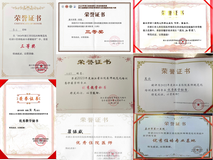 基地积极提升社会影响力,近年来住培学员省部级以上项目3项,管理人员及带教师资在毕业后医学教育论坛(住培高峰论坛)发言7次,获得省级以上住培荣誉近50项,内科专业基地高惜惜作为浙江省唯一进入2024年中国医师协会住院医师规范化培训指导医师教学能力竞赛操作性技能教学赛道决赛,并获得全国二等奖(第四名)。