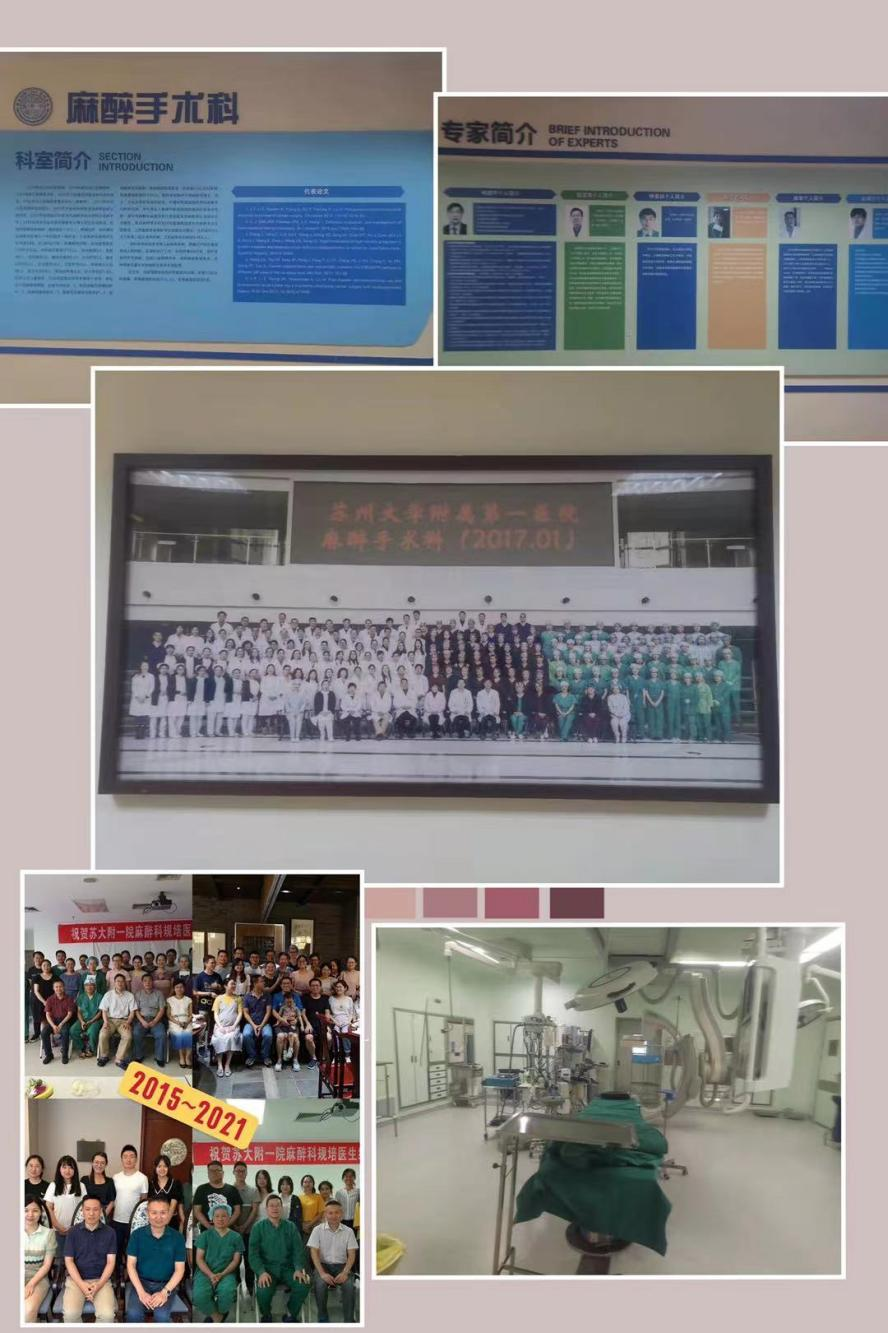 苏州大学附属第一医院麻醉科是国家临床重点专科,2020年获得国家规培重点示范基地,2021年获批苏州市麻醉学临床医学中心建设项目,并于2021年成立苏州大学麻醉学研究所。麻醉学科目前包括临床麻醉、重症监测、疼痛诊疗、体外循环、麻醉门诊、手术室为一体综合性科室,是国内设置最齐全麻醉学科之一,也是医院最大的科室。目前共有手术室70间,ICU床位35张,疼痛及日间床位36张,共126张床位,年麻醉量12万余台,年危重患者1万台左右,年门诊量1.3万人次,10年来无麻醉死亡、无纠纷、无投诉,麻醉相关死亡率1/30万以下。