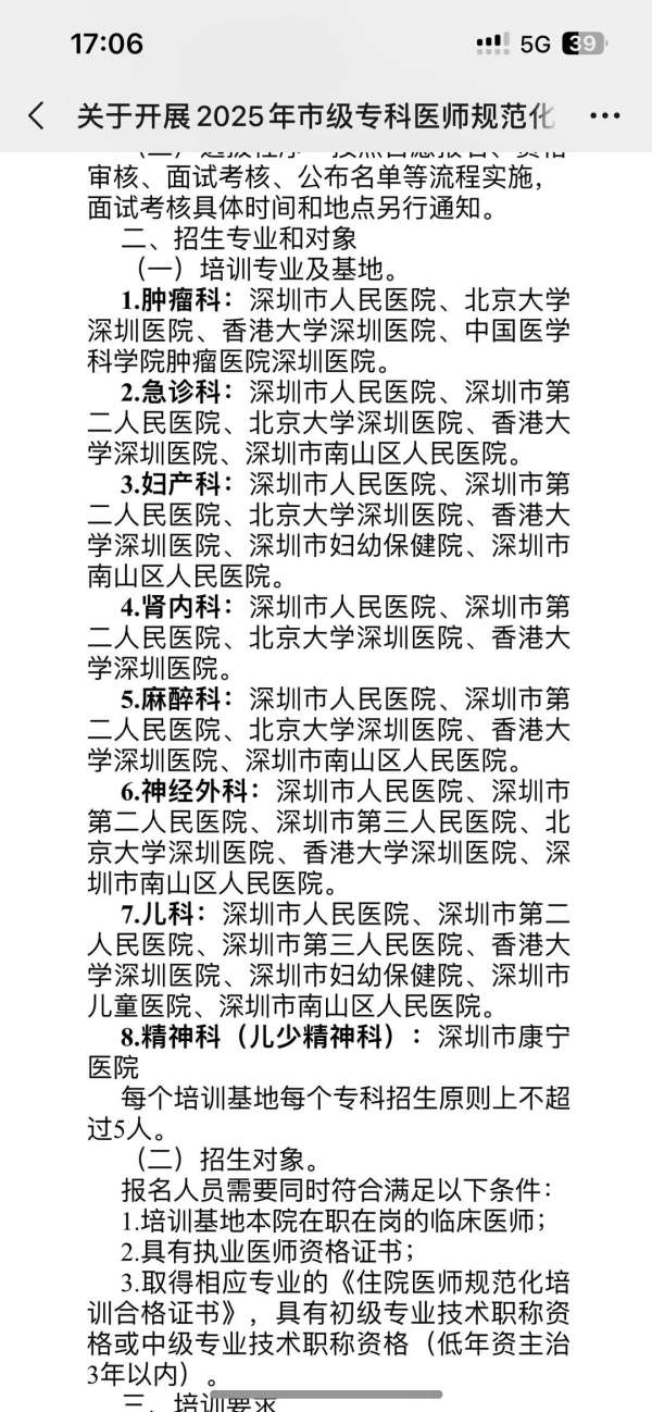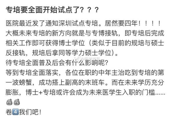最近一深圳网友爆料,说是他们医院发通知传达深圳试点专培,为期是四年。