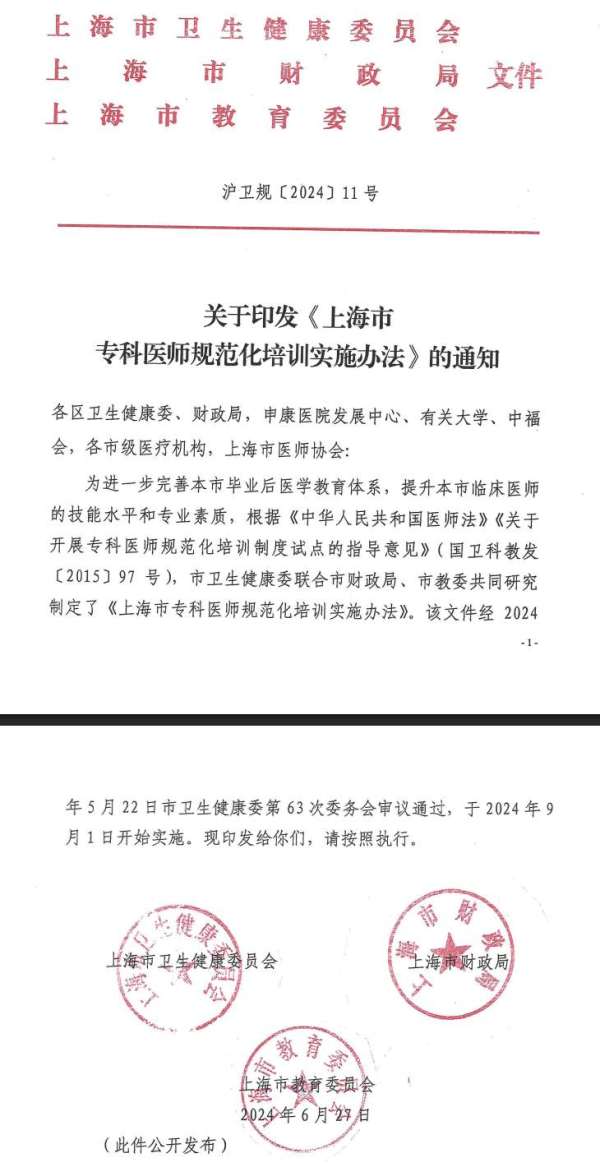 此前,上海已全面实施专培。上海市自2024年9月1日起正式实施《上海市专科医师规范化培训实施办法》,标志着专培制度在上海从试点转为全面推行。该政策明确了专培的培训对象、周期、考核标准及与职称晋升的关联,要求完成规培的医师需参加专培以提升专科诊疗能力。