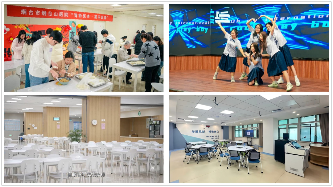 (六)各临床科室均设有示教室、值班室、更衣室和卫浴室等,职工自助餐厅全面开放。可提供住宿,宿舍配有空调、热水等设施。医院定期组织运动会、诗歌朗诵会、合唱比赛等文体活动,丰富业余生活。