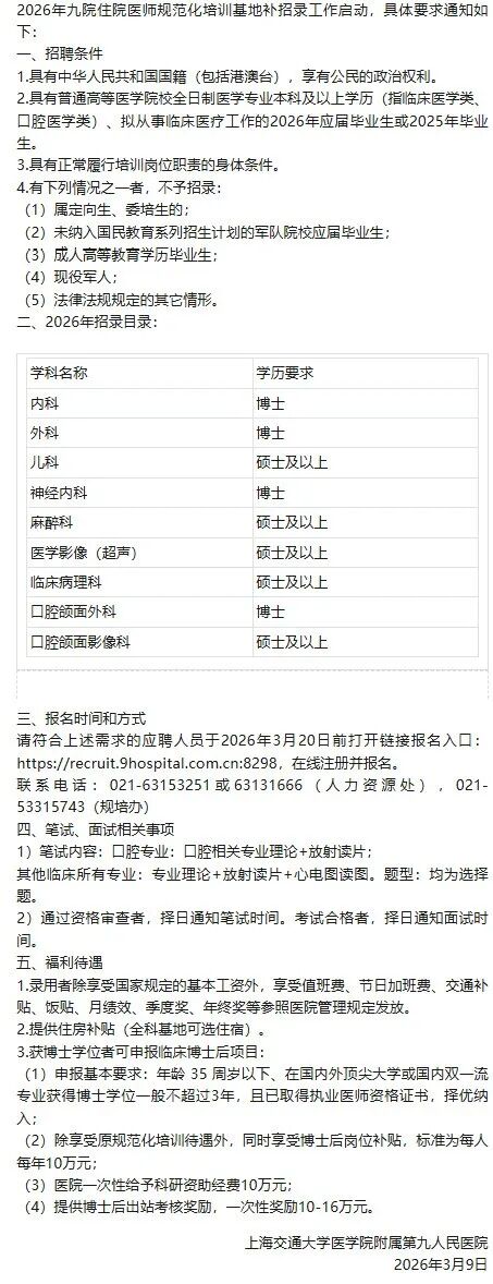 上海规培招生2026汇总