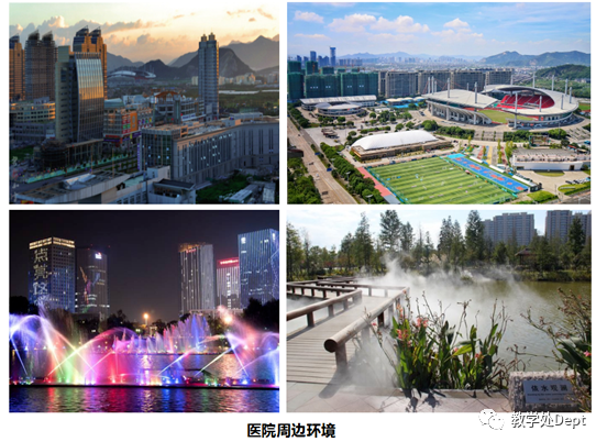 医院位于台州市市府所在椒江区的核心地段,紧邻台州市中央商业区,旁边环境优美,市民广场、美食街、青悦城商业综合体和市体育中心皆步行可达,优越的地理位置为培训学员提供了便利的生活条件。