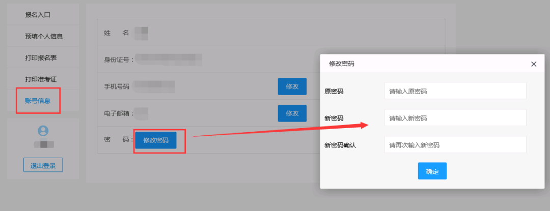如账号需要更换信息,可以点击进入【账号信息】界面,选择相应需要修改的数据,点击【修改】,修改完成点击【确定】即可。