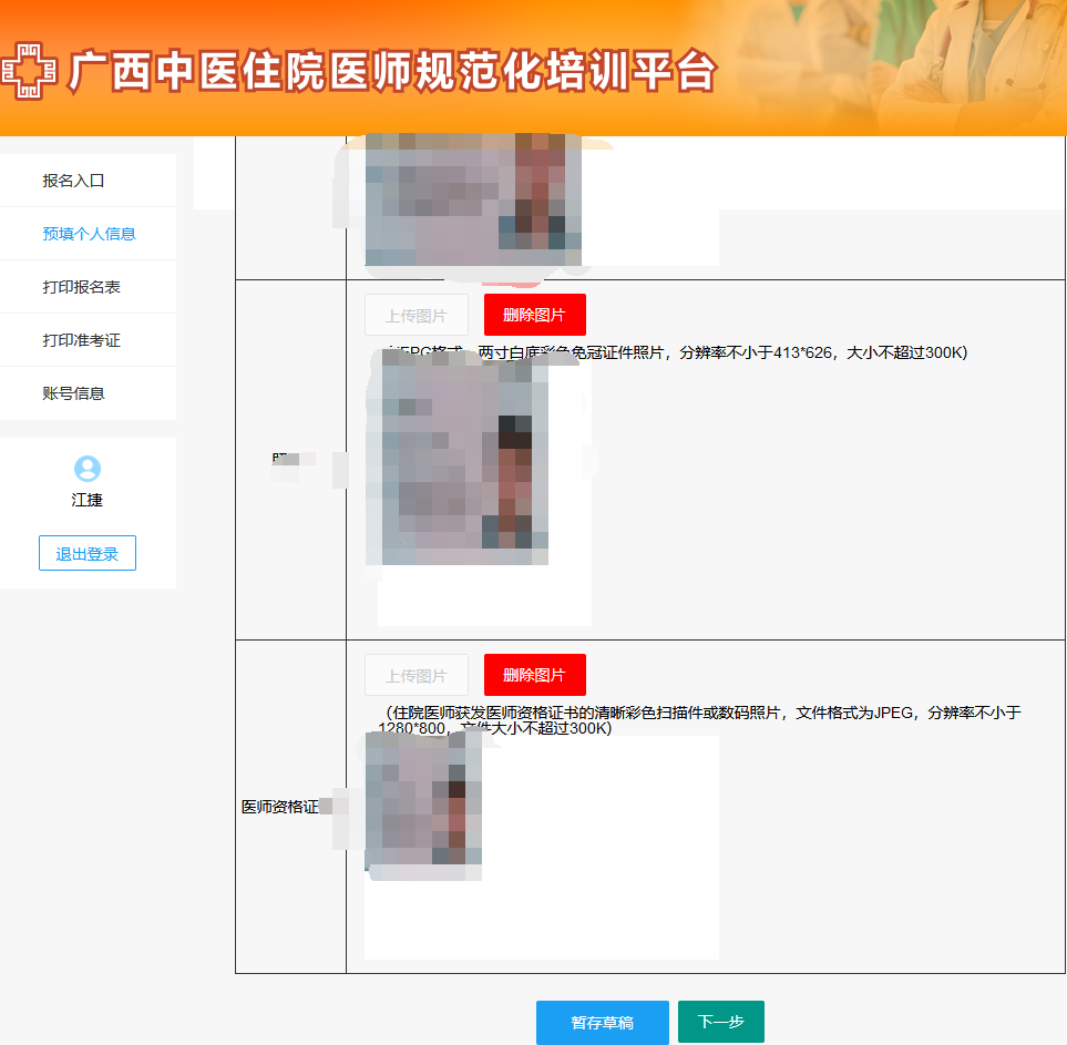 (2)考生填写完成个人信息后,点击【提交】即可。填写时可随时【暂存草稿】,再次进入可继续填写。