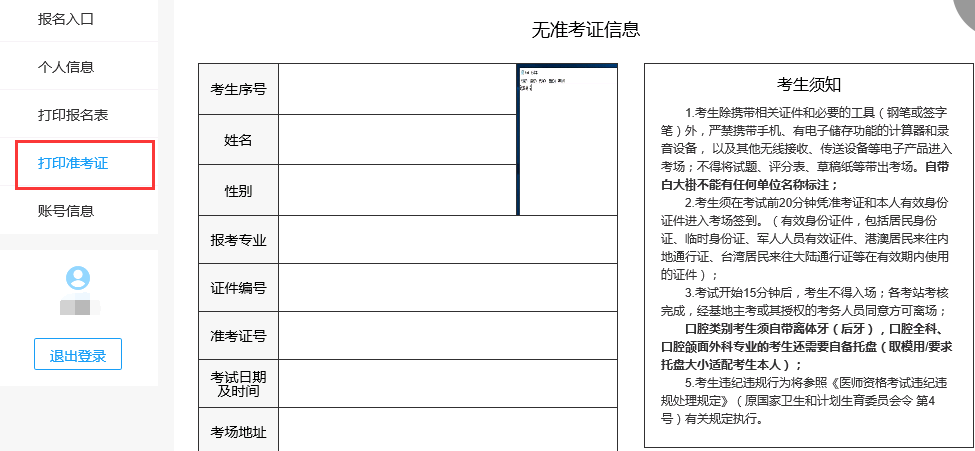 分配考场后可打印准考证,点击【打印报名表】进入核对界面,检查考生准考证信息无误,点击【打印】即可。