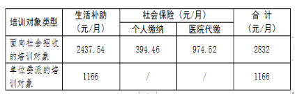面向社会招收的培训对象中央级补助1111元/月+省级补助1667元/月由医院发放,并与学员签订《黑龙江省住院医师规范化培训劳动合同》,明确培训期间双方权力义务,劳动合同到期后依法终止,培训对象自主择业,培训期间成绩优异者可考虑定岗留聘。学员在培训期间社会保险(五险)由医院按社会保险法等相关法律、法规、文件规定执行,保险缴纳费用单位缴纳部分由医院承担代缴,个人缴纳部分由学员承担在补助中每月扣缴,按2023年缴存基数测算医院承担963.39元,个人承担396.44元(根据每年度缴存基数调整)。