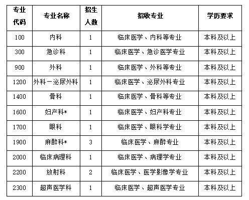 2023年,按照国家住院医师规范化培训要求,拟招收第二批住院医师培训学员14名,现将有关事项公布如下: