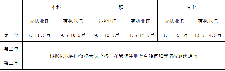 注:上述待遇为税前收入总额,已包含中央、省、市财政的住院医师规范化培训补贴、五险一金、节假日补贴、医院补贴等所有待遇。上述待遇为大致的估算值,具体以实际发放数额为准。